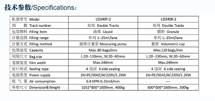 包裝速度:120包/分鐘