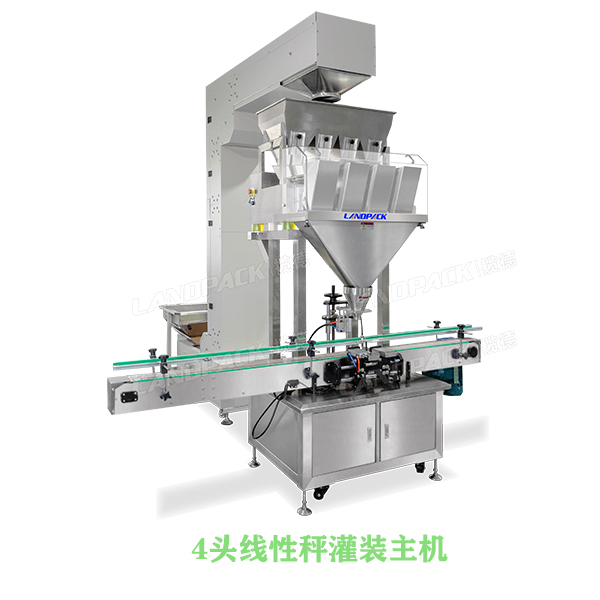 2.本線采用自動送瓶、線性秤灌裝機(jī)、四輪旋蓋機(jī)、對夾式定位圓瓶貼標(biāo)機(jī)、收集平臺組成全自動化生產(chǎn)線;