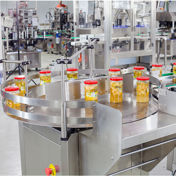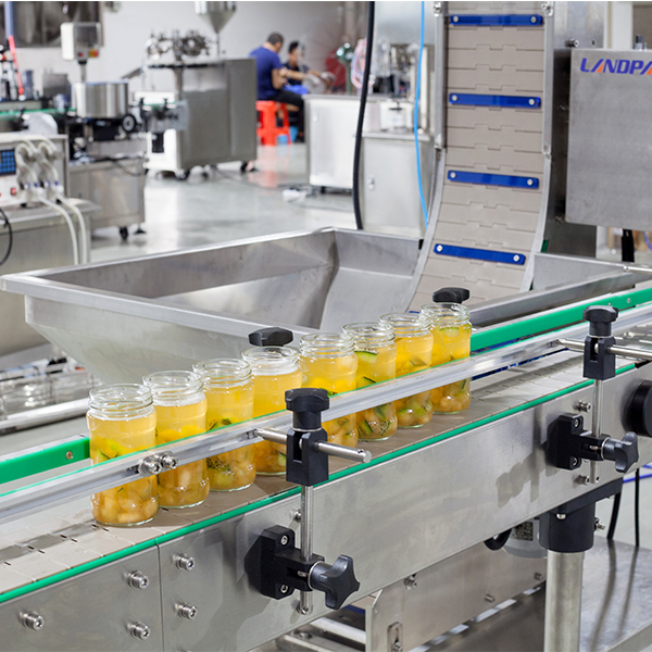 食品生產(chǎn)線主要工序:理瓶、電子稱稱重計(jì)量、灌裝下料、灌裝汁水、自動(dòng)上蓋、自動(dòng)旋蓋、鋁箔封口、貼標(biāo)簽、收瓶。適用于水果罐頭、腌蘿卜、泡椒、腌黃瓜、腌蒜、嫩姜、七彩椒、腌制食品等帶汁水的食物。