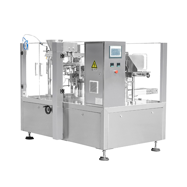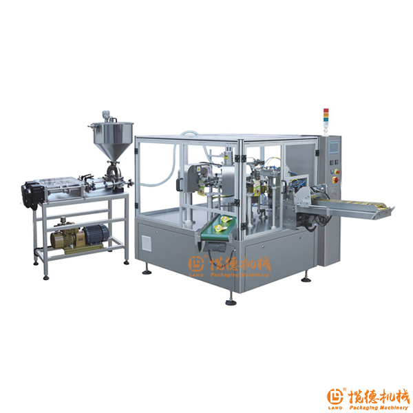 該設(shè)備由旋轉(zhuǎn)式全自動(dòng)給袋包裝機(jī)與液體灌裝機(jī)組成。主要適用于:液體、醬體、膏體類如:消毒液、洗滌劑、果汁、火鍋底料、番茄醬、花生醬、果醬、辣椒醬、豆瓣醬等物料的全自動(dòng)包裝作業(yè)。