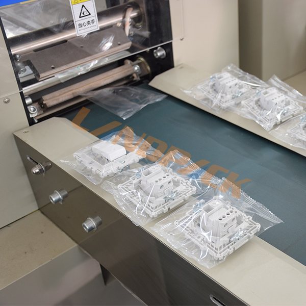 開關(guān)插座包裝機是一臺枕式包裝機來的,此款機器是我司針對開關(guān)面板、插座等一些電器元件而研發(fā)的一款自動獨立開關(guān)面板包裝機。